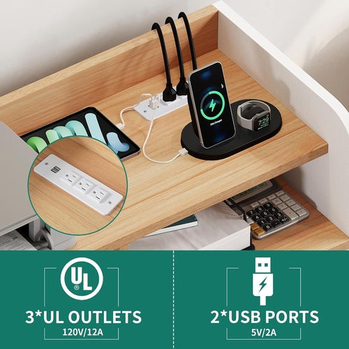 - Make charging easier: With 2 UL-Listed outlets, 2 USB ports and a 6.5-foot power cord at your fingertips, this wood file cabinet can simultaneously charge your printer, lamp, phone, iPad, and laptop during work or study