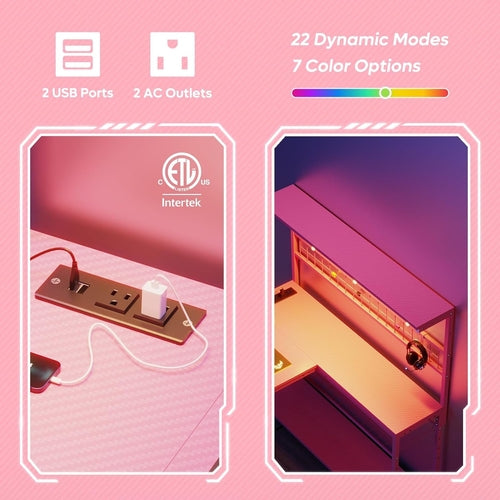 Gaming Desk 51" L-Shaped, with Power Outlets & LED Lights- 4 Tier