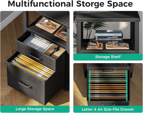 - Ample Storage: Equipped with five fabric drawers and one large file drawer, this desk provides easy organization for office supplies and gaming equipment.