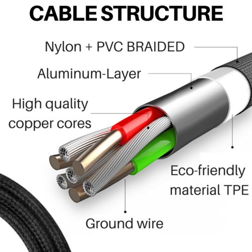 Phone Cable with anti-resistant aluminum alloy connectors, transmit data stably and fast charging without error message. High-quality four-core copper wires enhance charging & data transfer speed of the cables. Our technology ensures a faster charging time while keeping your device completely safe.