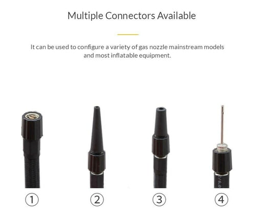 [Different Nozzles for Multiple Use]The tire inflator is suitable for inflating tires on cars, bikes, sedan and midsize SUV, not for truck. Does not support LT, HT and Truck Tires. Come with extra nozzle adapters, so you can also use it to inflate sports balls or other inflatables.