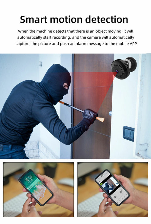 >>Excellent Function:①Remotely Viewing anywhere ②HD 1080P ③140°wide angle ④Support up to 128 GB SD card (not included) ⑤1.5 hours built-in battery ⑥Automatic night vision⑦Motion detection alarm push.